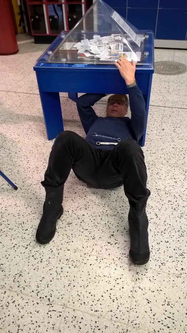 Keminmaan Citymarketissa kuutio, johon voi pudottaa joko suoraan rahallista tukea tai sitten pullonpalautuskuittinsa. Joka sentti menee keminmaalaisille lapsille, nuorille ja vähävaraisille. Kuvassa kuutiota huoltaa Hannu Salo.